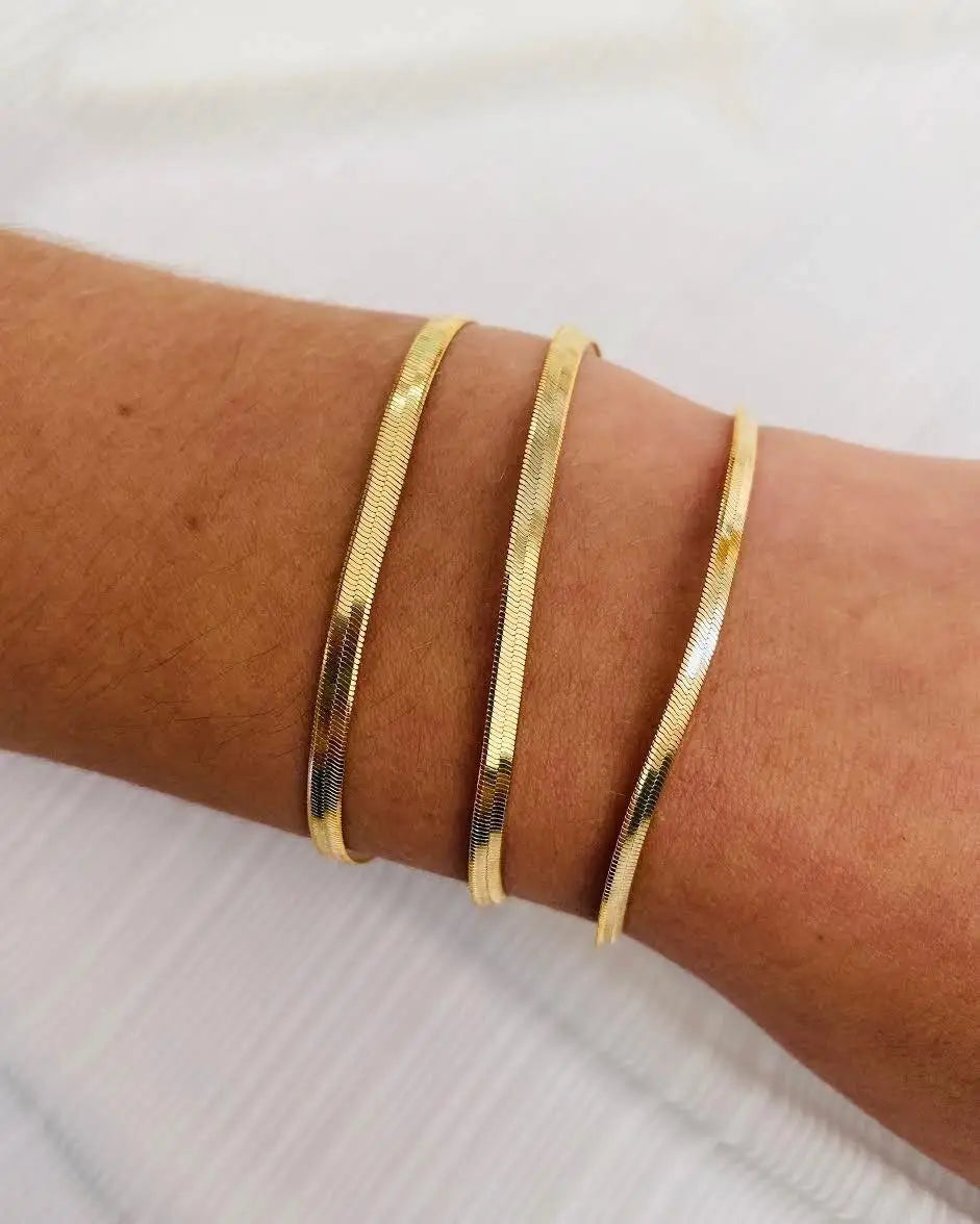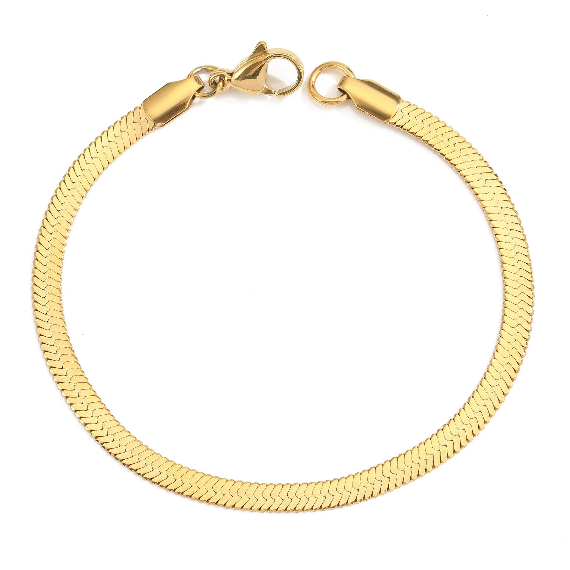 Minimalist Gold Color Herringbone Bracelet Flat Snake Chain Dainty Stack Bracelets for Women Handmade Jewelry Gifts Wholesale